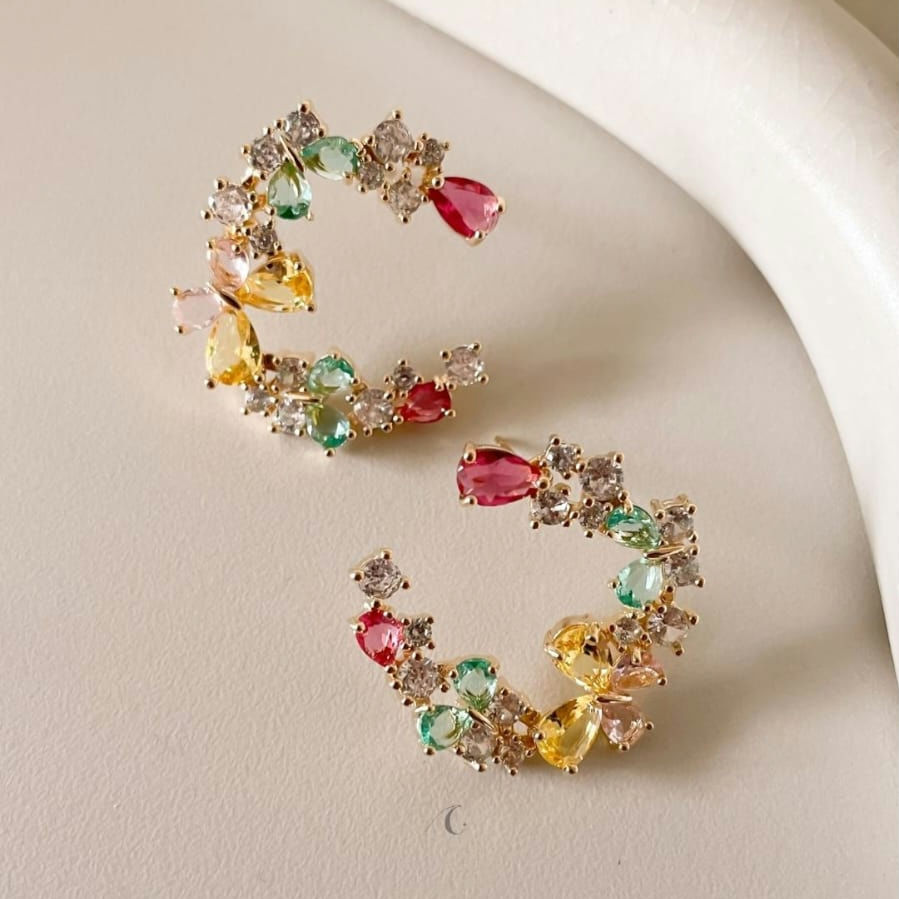 Brinco Spring Cravejado com Zircônias Coloridas