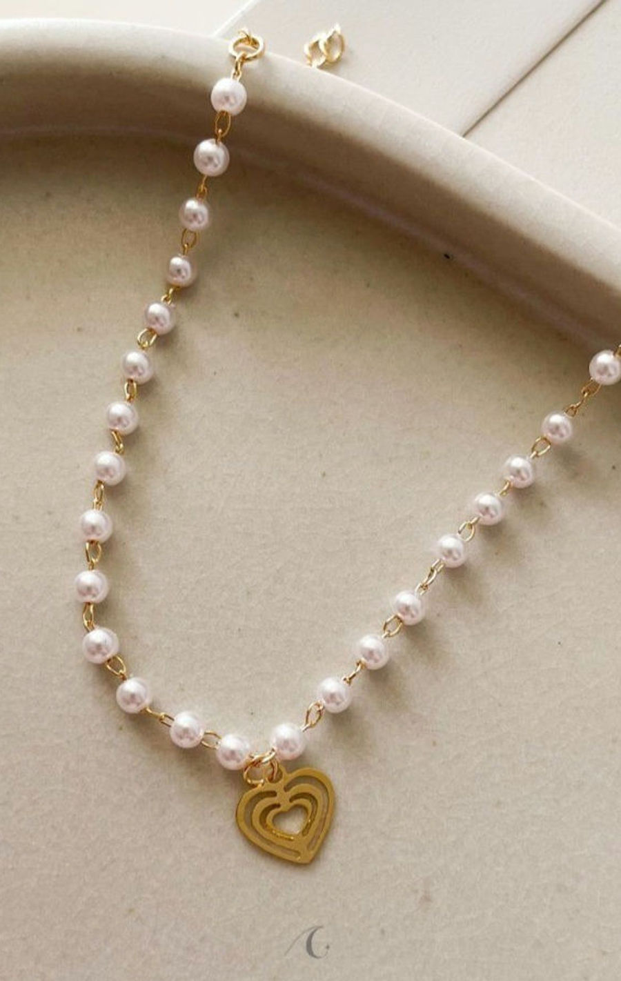 Pulseira com Pérolas e Pingente Coração